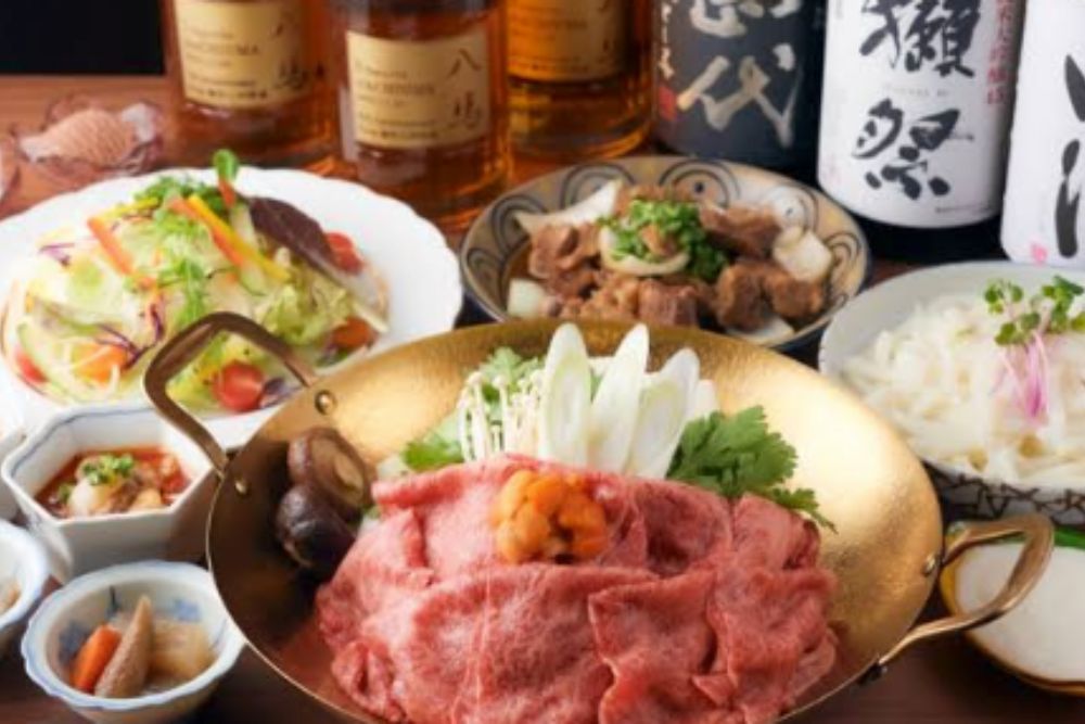 名物は国産A5ランクの黒毛和牛を贅沢に使用した、極上しゃぶしゃぶ&すき焼きがお楽しみいただけます。