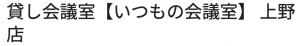 | 店舗名 | 貸し会議室【いつもの会議室】 上野店 |